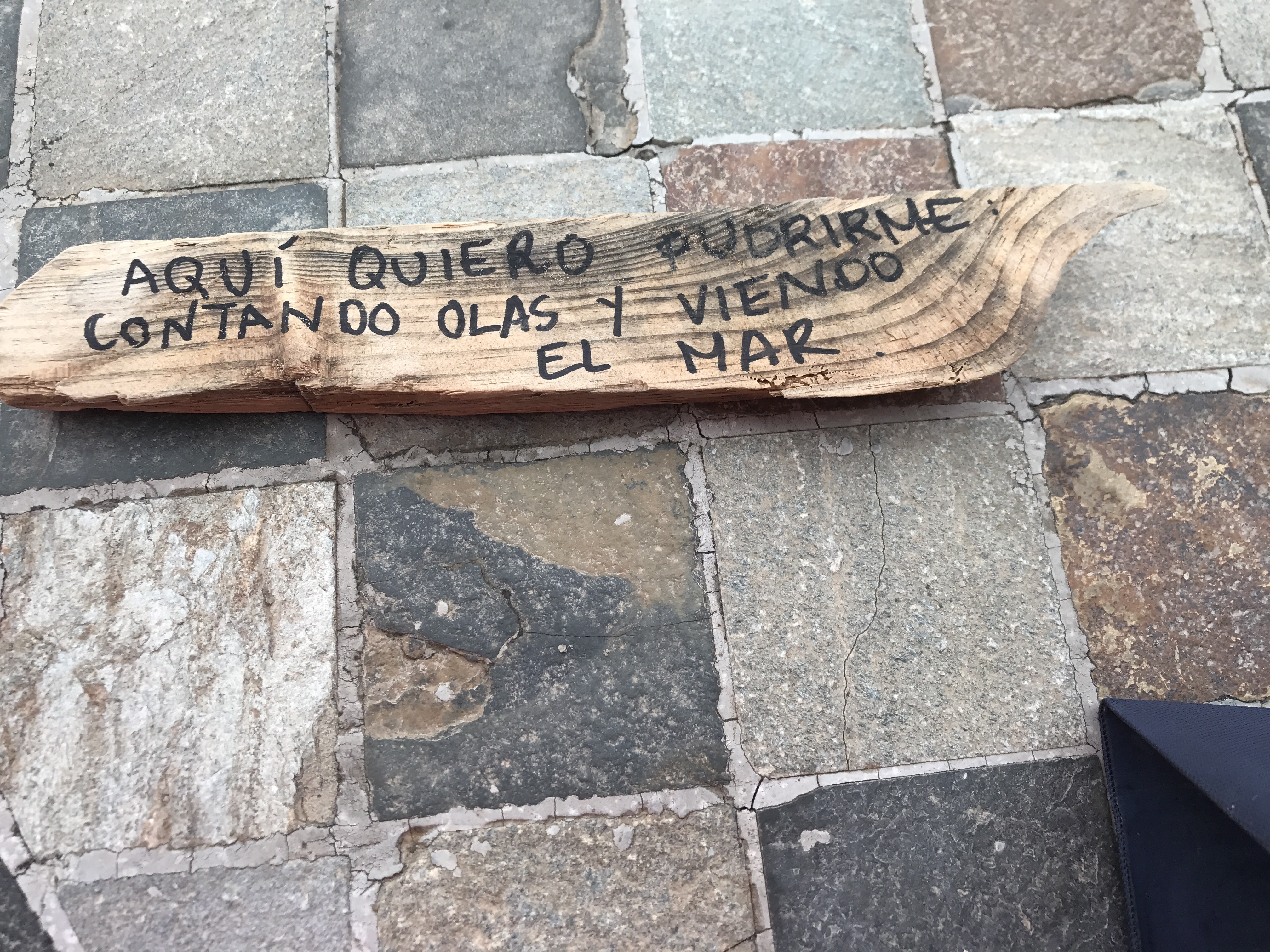 Hittade denne pinnen på stranden imorse. AQUI SOY FELIZ. Översatt betyder det: ”Här är jag glad”, skulle dock själv hellre översatt det med ”Här är jag lycklig”. Vem är inte lycklig vid strand, vågor, hav. Ett underbart uppvaknande på morgonen med en strandpromenad. När jag vände på pinnen så stod det på andra sidan: ”AQUI QUIERO PUDRIRME: CONTANDO OLAS Y VIENDO EL MAR” När jag slår upp det på Google translator så får jag fram. ”Här vill jag ruttna, räkna vågorna och se på havet. ” Är inte Google translator underbar. Lite osäker på om en infödd i Spanien hade översatt det likadant, men okey. Jag vill själv inte ruttna på stranden, men kanske räkna vågorna och se på havet.