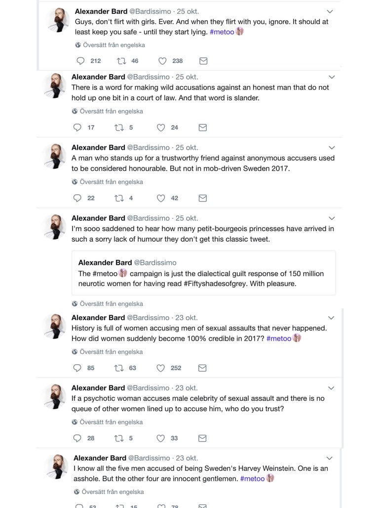 Alexander Bard är väl en av dessa män som inte har insett att kvinnor inte bara behöver ett ligg när de blir förbannade. Därmed en del av hans inlägg i ”metoo”. Hoppas att han någon gång börjar förstå vad det handlar om: