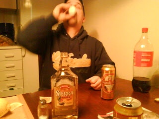 Igår hade tydligen min son och killarna bestämt att vi skulle ha Chili till middag idag. Det började dem med innan frukost. Vad värre var är att följer man det receptet som min son följer så börjar man dessutom med en speciell musik som jag inte kommer ihåg och med en rejäl tequila. Det startade alltså han, hans son och sonens kompis med till frukost. Blir spännande att följa hur deras dag blir med den starten, kanske de somnar innan tolv alla tre. Vi får väl se hur Chilin smakar och hur många som är vakna att äta den.
