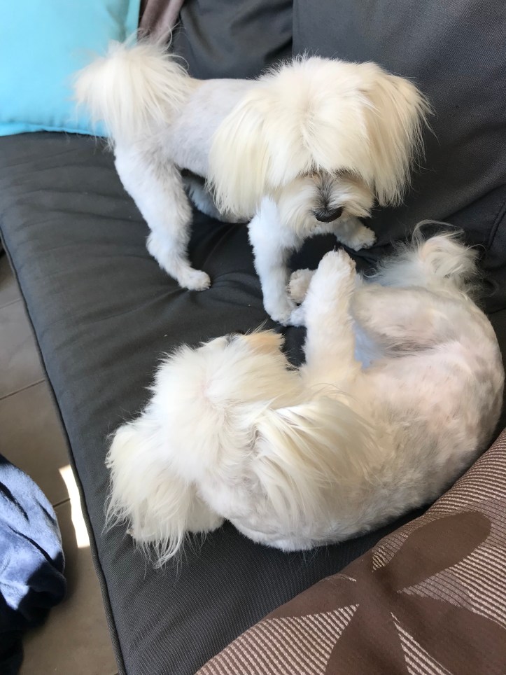 De var helt oregerliga mot varandra när de väl hamnade i deras favoritsoffa här hemma. Kanske de tyckte det var skönt att bli av med all sin päls och var bara lyckliga och lekfulla.