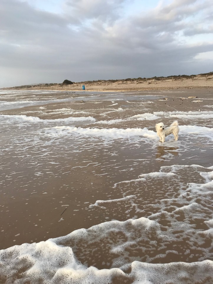 Fluffy har börjat med något nytt på stranden. Hon har ju alltid helst gått på asfalten om jag och Pippi har gått på träbron och tvärtom. Det verkar som om hon skäms över vårt sällskap. Sedan har hon ju inte varit speciellt tuff när det har kommit till att vara ensam när hon har mött stora hundar. Nu har hon vidareutvecklat detta till att gälla människor utan hundar. Speciellt farliga tycker hon tydligen de människorna är som går och tittar på sina mobiltelefoner. Och de finns det faktiskt gott om. Jag vet inte helt vad denna nya modetrend handlar om, men jag har flera gånger varit nära att krocka med dessa typerna. Alltså de som inte kan slita blicken från telefonen när de är ute och går. Men nu gäller det alltså Fluffys nya rädsla. Människor har hon inte gärna gått fram till men aldrig varit rädd för dem tidigare. Nu fryser hon till is och när de börjar närma sig så backar hon bakåt. Jag har stoppat hennes beteende genom att gå ner från gångbron och gått fram till henne för att ingjuta lite mod i henne. Men hon visar också en del rädsla för människor utan mobiltelefon, men inte lika mycket. Kan ju förstå henne lite, eftersom de där med mobiler kan gå över henne och liten som hon är så kan de ju mosa henne mer eller mindre. Det är inte alltid så dumt att vara på sin vakt. Men att bli närmast panikslagen är ju lite mer än att vara på sin vakt.