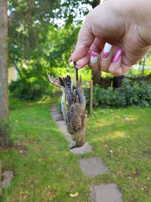 Fluffy har fångat ännu en fågel. Förstår inte det här helt. Hon är ju en hund, inte en katt och inte kan hon flyga heller. Hon är ganska brutal och leker med dem som en katt leker med en mus. Jag, som inte kan se på, går iväg. Klarar ju inte ens av att hjälpa den stackaren att dö. Det är de där fåglarna som ser nästan ut som en gråsparv, men som tydligen heter spansk fink eller något liknande. De verkar inte att vara utrotningshotade och jag måste ju säga att jag älskar inte dem precis, då de finns här inne på min tomt i massor tycker jag. Bygger sina bon där jag absolut inte vill ha dem och bajsar på mina utemöbler. Ibland listar dem sig också in i huset och bajsar där inne. Då jag har ganska högt i tak och fönster 7 meter upp i luften, kan jag inte göra så mycket för att få ut dem. Kan bara stå och titta på dem och öppna hela fönsterpartiet i hopp om att de skall flyga ut självmant. Än så länge har den strategien lyckats. Jag har nu gjort mig av med den stackars fågeln och Fluffy springer omkring och letar efter en ny med stor iver. Hon tyckte tydligen det var väldigt kul att få en ”lekkamrat” som rörde sig. Det var något annat än hennes lekdjur som hon själv måste se till att de rör sig. Naturen är grym!