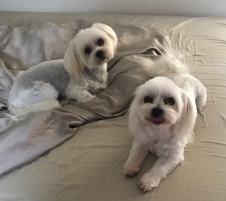 2 Nyklippta hundar som behöver vila efter tortyren.