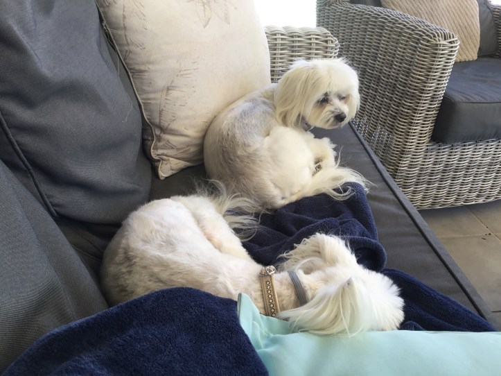 Hundarna har varit på sin månatliga trimning och är väl lite utslagna också på grund av denna känslomässiga påkänning för dem. Några dagar till så här så tror jag att de är helt avtrubbade och inte reagerar för något som händer i det här huset. Grannen är lite avundsjuk på mig eftersom de hade lovat honom att först sätta upp hans solpaneler och därefter mina. Så blev det av någon anledning inte. Hoppas i alla fall att de är klara innan jag åker till Sverige och att jag har fått internett tillbaka. Tydligen skall det komma någon och höja upp internettmottagaren, eller kanske det kallas antenn två meter eftersom panelerna tydligen kommer att skymma mottagningen. De som har lovat mig fiber i ett år nu, det kanske vore på tiden att de installerade fiber istället. Jag har förstått det som så i alla fall att man då inte behöver ha antenn på taket. Undrar om de kommer. Killarna på taket ringde dem imorse, men jag har inte sett till dem ännu. Tror jag i alla fall, men det har ju varit så många människor som har sprungit ut och in.
