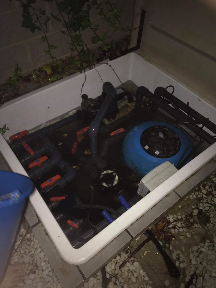 Så här såg det ut i mitt pumphus. Inte konstigt att strömmen gick i hela huset. Kortslutning på grund av översvämning.