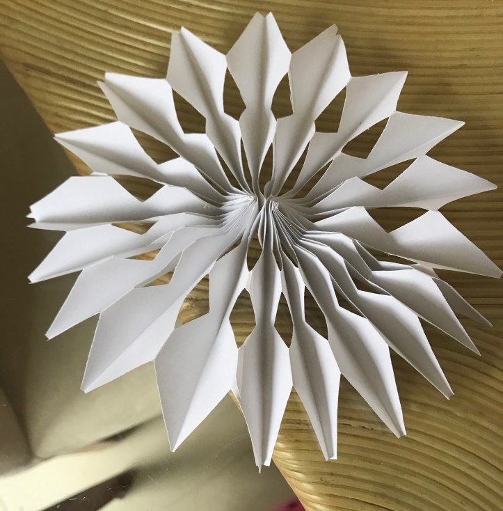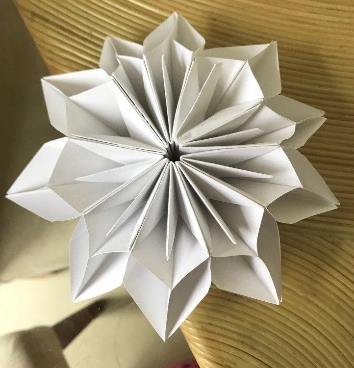 Det regnar idag, har faktiskt kommit lite regn de sista dagarna, lite ovanligt för att vara här men bra för växterna. Det är ganska grönt just nu och jag slipper att vattna mina krukor. För att göra något överhuvudtaget, när man bara sitter och passar hundar har jag börjat med lite julpyssel. Tänk så mycket det finns på youtube. Egentligen började jag att leta efter en speciell julstjärna som jag har vikt massor av tidigare, men som jag har glömt hur jag gjorde. Har inte hittat den ännu, men gjort en massa andra julstjärnor istället och till och med en liten gran. Inte för jag vet vad jag skall göra med dem, eftersom jag ju inte hade tänkt att julpynta i år. Jag kan ju inte hänga upp en massa julstjärnor överallt, när jag inte hade tänkt att julpynta huset. Det kommer väl bara att se ut som om jag har rånat en pappersfabrik. Skall kanske invitera några vänner på en julpysseldag.