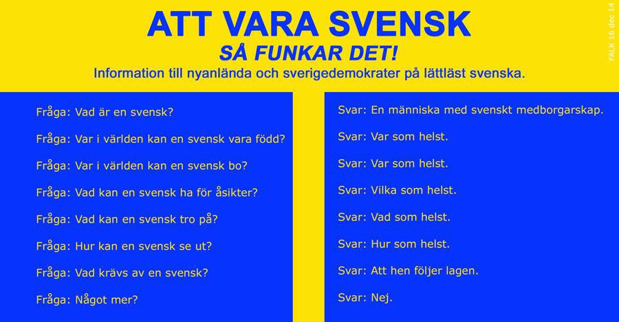 Nej, men allvarlig talat varför kan vi inte vara lite stolta och tacksamma över vårt land och sluta klaga på allt och alla. Vi bör nog också vara tacksamma för att vi har fått lite påverkan utifrån. Till exempel köttbullen. Den serverades i både England och Bagdad under 1000-talet, men finns inga fakta för att den fanns i Sverige på den tiden. Kåldolmen kom till Sverige på grund av att Karl XII:s härtåg i främmande länder, där han också på samma gång importerade en massa invandrare redan på 1700-talet. Han var en av de människor som tillät massinvandring till Sverige. Tur att vi hade honom så att vi kunde bli lite uppblandade med lite mer kontinentala vanor. Tack för kåldolmarna också. Han befann sig länge i Turkiet och var positiv till islam, undrar om nynassarna vet det? Tror inte det. Han befann sig ju inte så mycket i Sverige, mest utomlands och dessutom var han själv invandrare av fjärde generationen. Men vad kan man räkna med när man sätter in en 15-åring som kung. Tänk bara vad som hade skett med alla nuvarande 15-åringar som leker krig på internett dag som natt om man hade gett dem en hel värld att leka krig i.