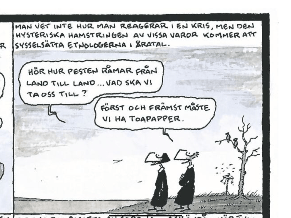 Sedan är det ju det där om vi har en scouthjärna eller en soldathjärna. Soldathjärnan tror utan att sätta något som helst frågetecken på det som gruppen tror på medan scouthjärnan söker lösningar som kanske inte alltid är de bästa. Jag vet inte helt vilken hjärna jag är ägare till. Troligen inte soldathjärnan. Det mesta har ju blivit politik och ett klassiskt exempel är stängda gränser. Där det finns en rörande samstämmighet mellan experter i hela världen att gränssättningar har aldrig fungerat och kommer aldrig att fungera. Men det är ju det där som inte är logiskt helt att allt främmande är farligt och då försöker vi stänga in oss istället för att lyssna på experterna. Det blir liksom med Kina som bombade med kemikalier för att visa att de var handlingskraftiga även om de visste att det inte hade någon som helst effekt på smittospridningen. Men människorna kände sig tryggare. Och det kanske är en god effekt. Det blir som att sätta på sig munskydd och använda handsprit tills vi får eksem. Det har inte någon direkt effekt på smittospridningen men folk upplever att de gör något och då känner de sig tryggare. Samma effekt har kanske hamstringen av toalettpapper.