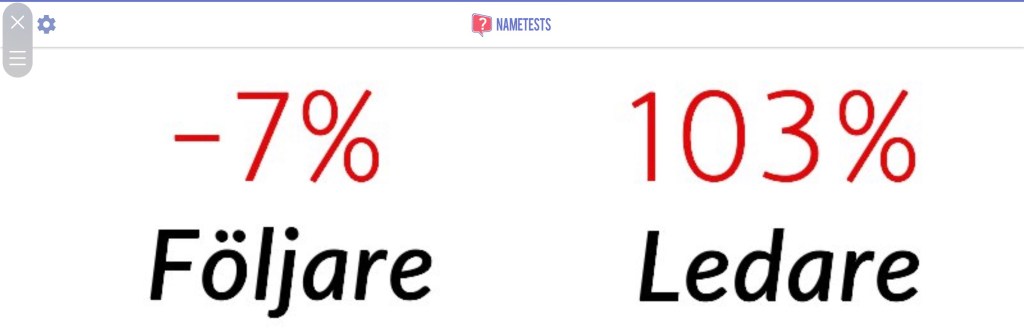 Enligt test gjort på Facebook är jag 103% ledare och 7% följare. Undrar hur det gick till. Trodde faktiskt inte att man kunde vara mer än 100% av något som helst, men så är det inte. Jag är 103% ledare. Att jag inte var så mycket till följare har jag väl förstått redan innan. Speciellt håller nog mina systrar med om det. Min ena svåger har alltid sagt att jag har svårt för att ta regi. Det var nog tur att jag inte blev skådespelare, som jag drömde om när jag var tonåring. Vilken tonåring drömde inte om det, kan man kanske fråga sig. Men jag skulle alltså klart välja en annan yrkesbana eftersom det väl är nödvändigt att ta regi om man skall vara skådespelare. Ibland har man tur, eller det kanske var regissören som hade tur. Alltså alla de här väldigt vetenskapliga testen på Facebook verkar att förfölja en. I och med en test så har jag fått många andra förslag på vetenskapliga tester. Kan få veta om min dotter är mer dominant än vad jag är och till och med mina hundars personlighet. Ofta behöver de bara veta mitt namn. Fantastiskt. Här har jag som psykolog ägnat timmar åt att tolka personlighets- och intelligenstester. Jag hade ju bara kunnat berätta mina klienters namn på Facebook, så hade jag fått svaret.