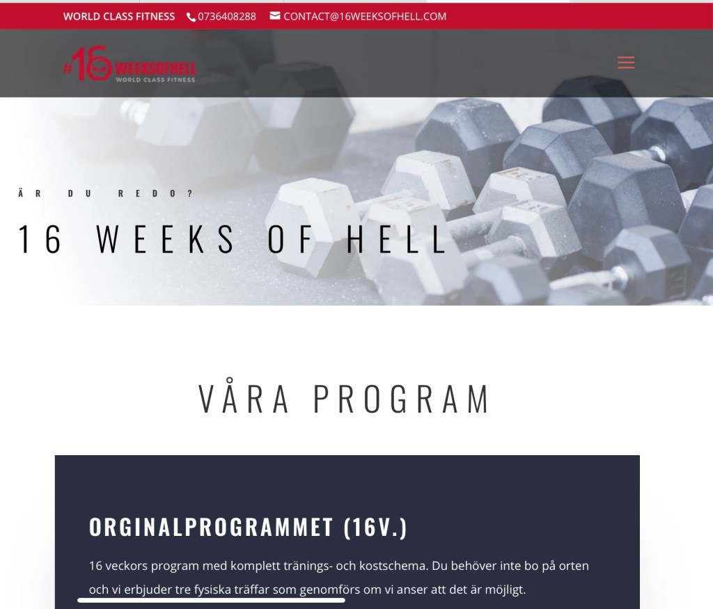 16 veckor, 112 dagar avklarade igår med 16 weeks of hell. Trodde aldrig det i starten. Men nu 10 kilo mindre och 20 cm i midjan är en av effekterna. Den största effekten är dock att jag känner mig starkare och har mindre ont. Nu är det bara att fortsätta.