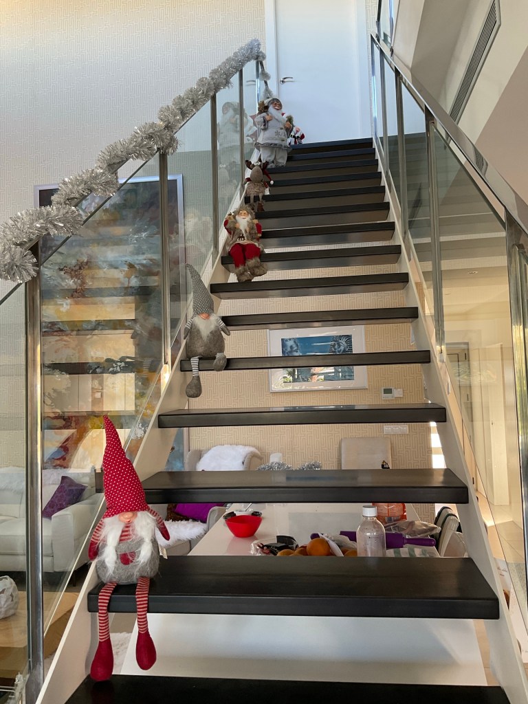 Igår var jag också och fick en tid till min bil. Skärmen för GPS och lite annat har ju lagt av. Den är helt svart. Jag trodde i min ovetenhet att det bara var för dem att göra något lite och fort så skulle den fungera igen, men det var kö och jag får vänta till den 16 december med att få den fixad. Efter det körde jag till ”vår” Kinabutik och köpte tomtar. Har nu satt dem i min trappa. De klättrar alltså uppåt. Trodde att jag köpte en konstgjord julstjärna också, men den visade sig vara en äkta sådan. Bruten och gänglig när jag kom hem. Hade ju behandlat den som en konstgjord. Det skall man inte göra med äkta levande växter. Nu gäller det att försöka att komma ihåg att ge den vatten då och då. Är inte så bra på det. Brukar ta död på det mesta av växter som befinner sig inomhus. Därför föredrar jag konstgjorda. Det är bara att duscha dem då och då så klarar de sig. Passar mig bättre.