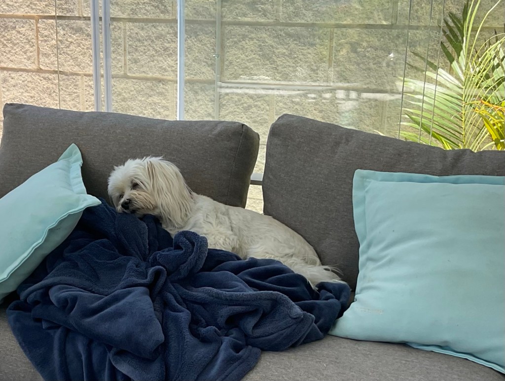 Har dock kommit på ett knep när vi kommer till en park där hon inte kan bli överkörd av bilar. Hon får gå själv med koppel. Då kan hon faktiskt plötsligt till och med springa. Inte bara sitta och titta på mig. Kanske hon en gång kan gå när jag håller i kopplet. Ja, vi har en del utmaningar framför oss.