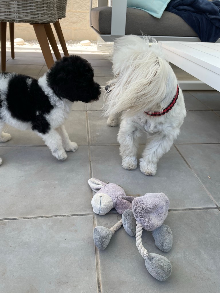 Har de här 4 dagarna som hon har varit hos oss inte gjort så mycket mer än varit samman med henne och sett hur allt fungerar. Har lekt och suttit hos henne, då jag förstått att hon har behövt närkontakt mest hela tiden. Hennes styvmamma Fluffy kör en hårdare variant av uppfostran och hennes styvsyster Pippi har ju bestämt att hon inte existerar. Så det får bli jag som ger henne det. Men nu verkar det som om huset börjar bli för mycket valp och för lite ordning och reda. Skall se hur det blir för henne med dammsugare, golvmopp och andra städgrejor. Intressant upplevelse. Fluffy tillhör ju dem som försöker döda dammsugaren och Pippi som vanligt bestämmer sig för att den inte existerar. Pippi försvinner på egna uppdrag när dammsugaren kommer fram. Har inte använt mig av robotdammsugaren ännu när Why är här. Just nu har vi matkulor överallt. Vet inte varför hon äter så att allt hamnar utanför matskålen. Blir kanske bättre eller kanske inte. Rapporterar om hur det går med städning och Why.