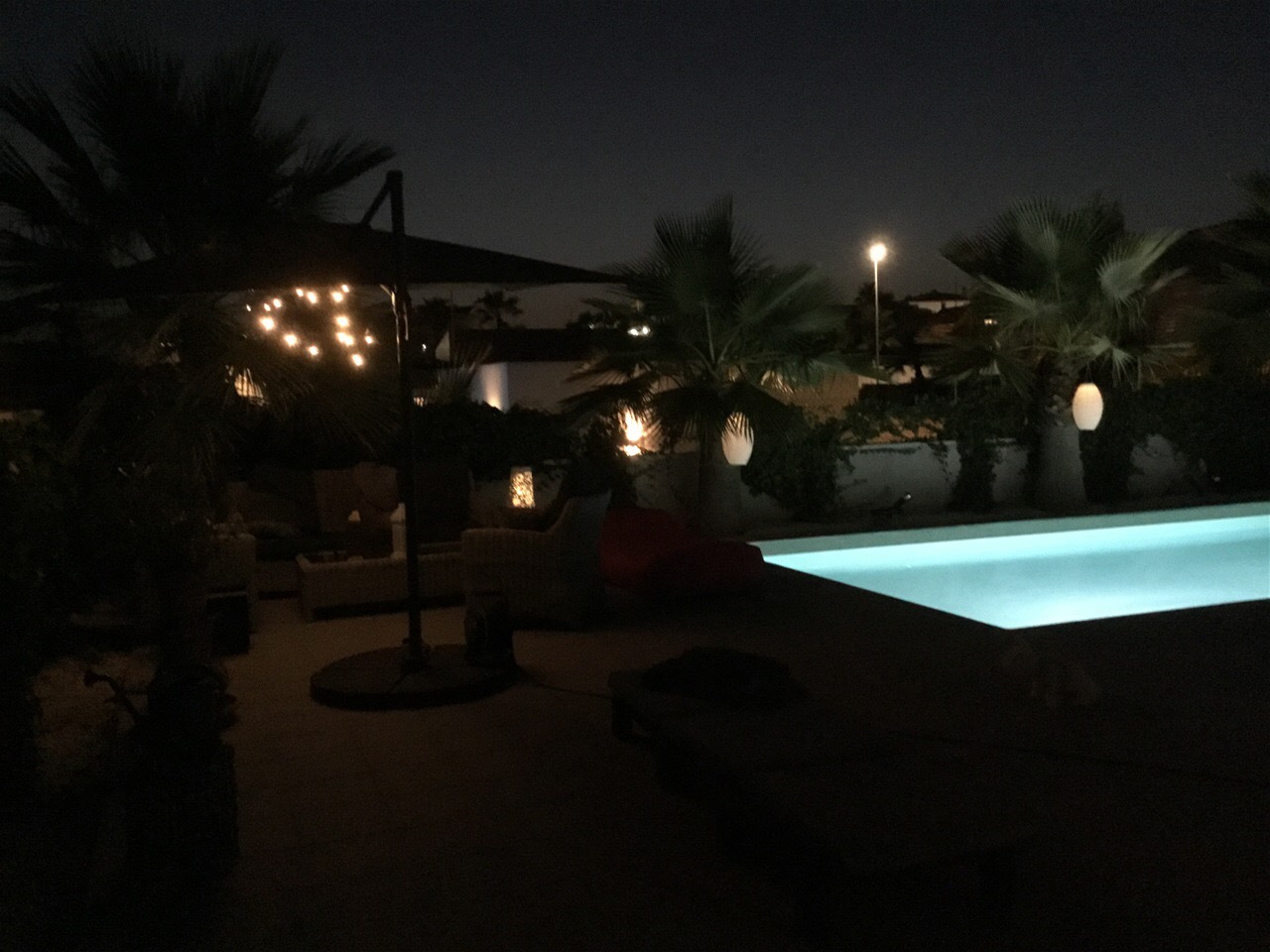 Sitte nu ute Klockan 23:00 och 27 grader. Kvällarna är helt underbart här. Jag bara älskar dem. Dalarna kanske lite för varma för att ligga dirket i solen, men i skuggen är det skönt och att bara gå ner i bassängen, lugnt och sakta är också helt underbart på dagen. När det är lite kalt i bassängen dyrker jag alltid i för att slippe tvekan om jag skall eller skall inte doppa mig. Nu när vatnet är så varmt, så känns det väldigt skönt att bara gå i och omslutas av vattnet, jag lovar det svalkar även om det är varmt. Att bara flyta fram i det är en upplevelse som jag inte vill vara utan. Att gå omkring här i La Marina tidigt på morgonen är också något jag njute av. Dofterna från alla blommorna är helt underbart. Oleandern blommar nu längs vägarna som om det var deras sist önskan i världen. Vita, rosa, röda och i en massa färger. Visste inte att det fanns så många färger. Man säger att Spanien är brunt och trist på grund av solen, men Spanien har tydligen gjort något med bevattningen, då de har många fler färger än vad jag hade inbillat mig på grund av blommorna som blommar som bäst nu. Ja, det finns gröna färger också, men blommorna säger sitt tydliga språk med mångfalden av färger.