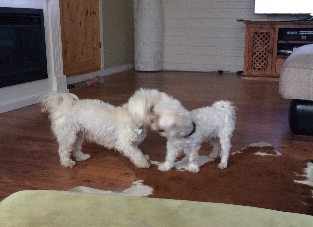 Jag har ny varit hos veterinären med hundarna. Hon som har mer är en hjärncell skulle vaccineras. Det blev inget av med det, de hade fått ett akutfall. Hon med mer är en hjärncell tror fortfarande efter 4 år att hon kan gräva sig ut genom bildörren, när man stannar bilen. Undrar hur det är med hjärncellerna. Den andra tror under hela bilresan att man kan gräva sig ner i sätet samtidigt som man låter som en kanariefågel. Jag tor att hon leker de 3 aporna, jag ser inte, jag hör inte osv. (Men låter. Kanske bara 2 av aporna)